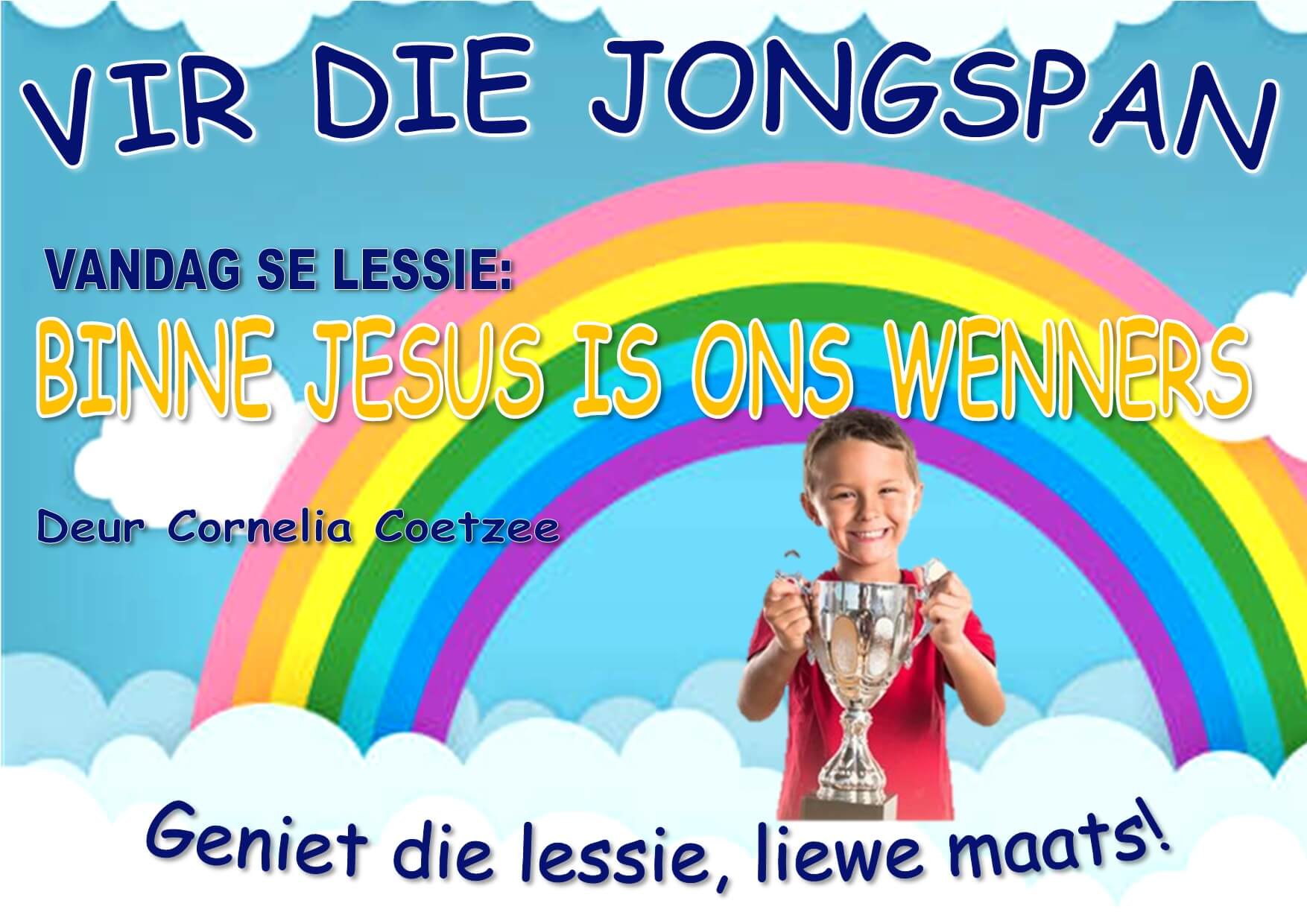View Larger Image Binne Jesus Is Ons Wenners By admin|2021-12-06T04:52:56+00:00December 6th, 2021|Jongspan|0 Comments FacebookXLinkedInWhatsAppPinterestXingEmail About the Author: admin Related Posts Beste Vriende Jesus Se Sorg Loof, Loof, Loof Die Here! Nougeset Te Handel Wees sterk en vol moed Leave A Comment Cancel replyComment Save my name, email, and website in this browser for the next time I comment.